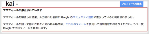 もしアカウントが停止された場合、Google+の自分のプロフィールページにGoogleからのメッセージが表示されます。